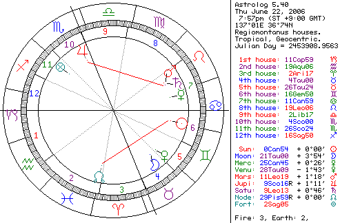 ホラリー占星術 Kuni Kawachi 2006年 6月22日 |